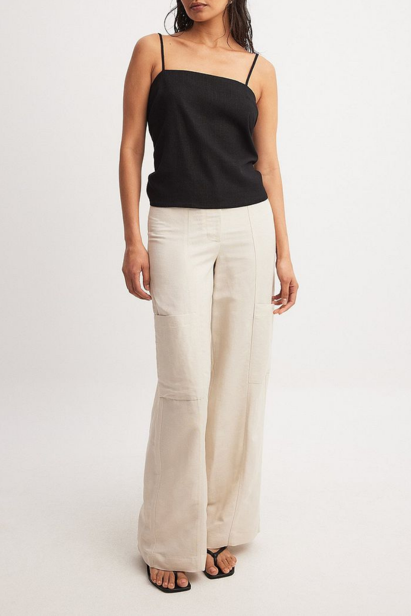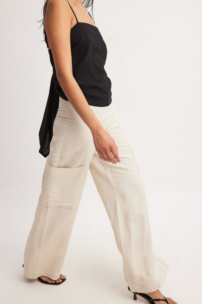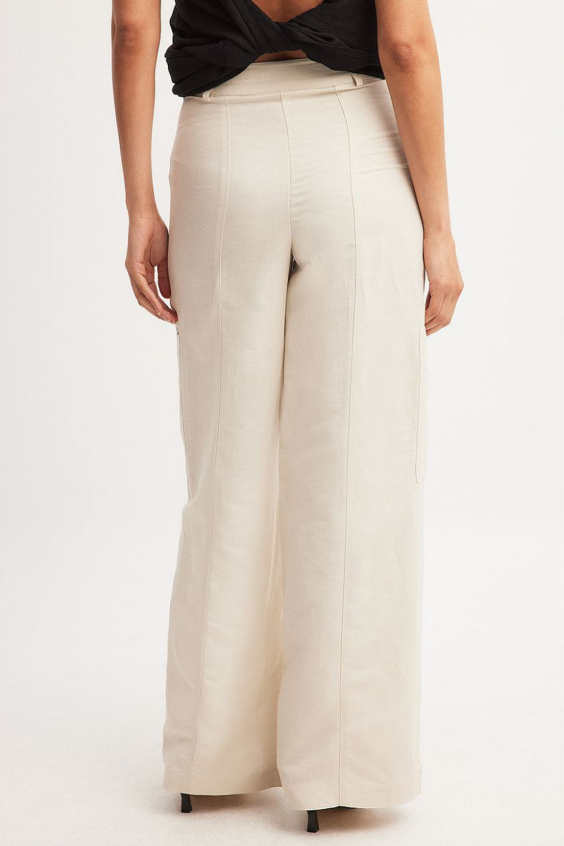 Our mid-waist beige linen pants for women are cut in a straight fit for a sleek silhouette, featuring two spacious side pockets and all-day comfort in a breathable linen blend.