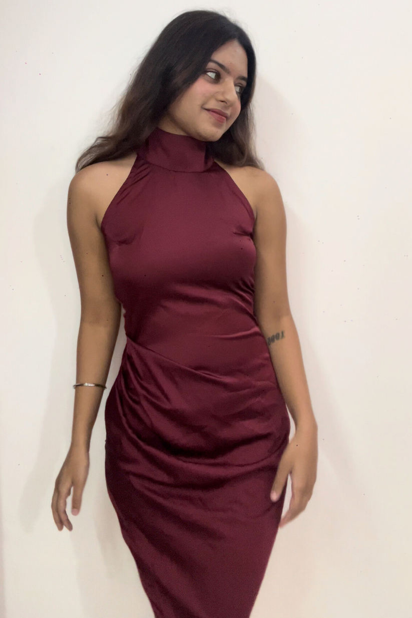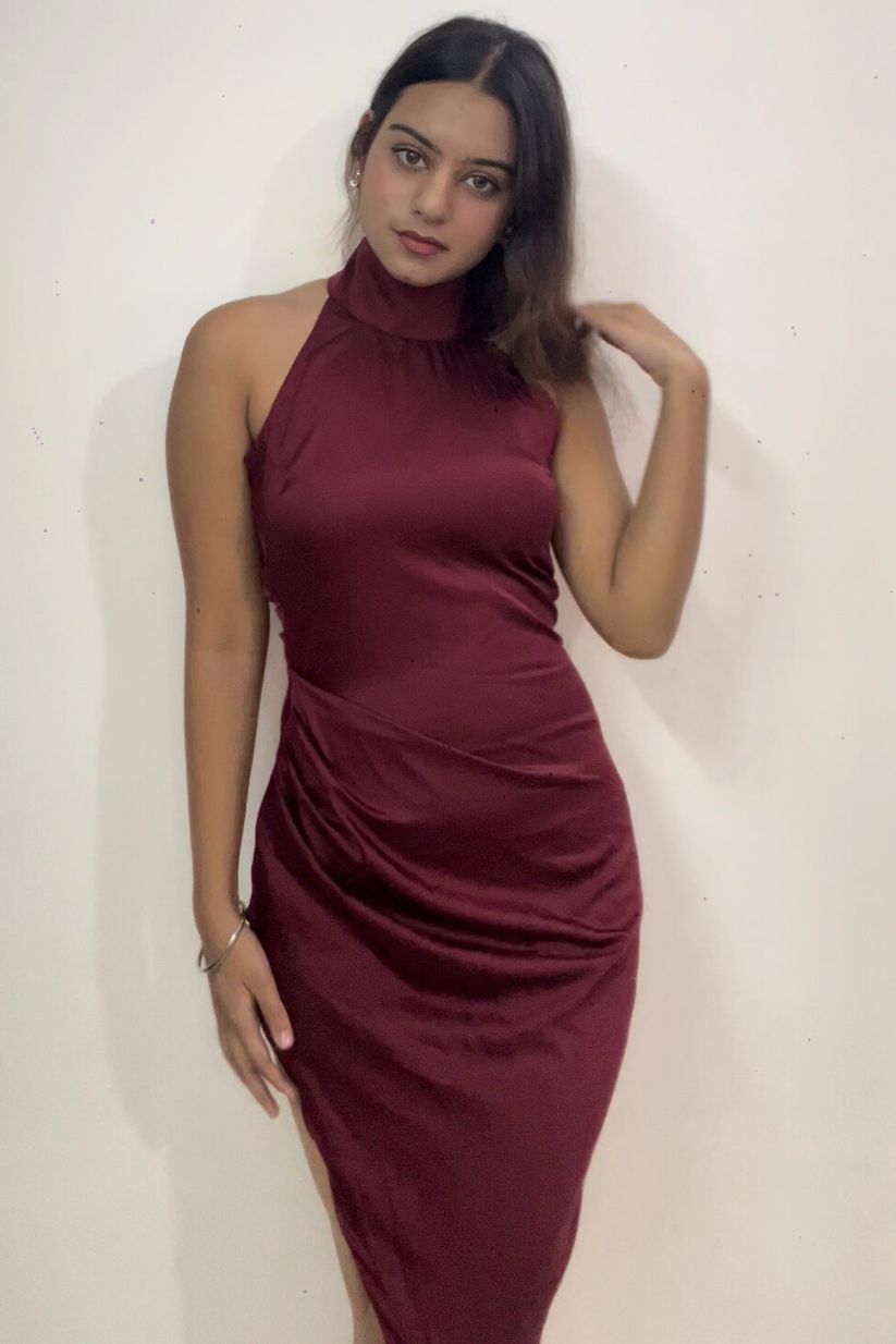 Featuring a striking high neck and broad collar, this ankle-length dress is all about effortless style. The side slit adds a hint of drama, while its lightweight, breathable fabric keeps you comfy all day.