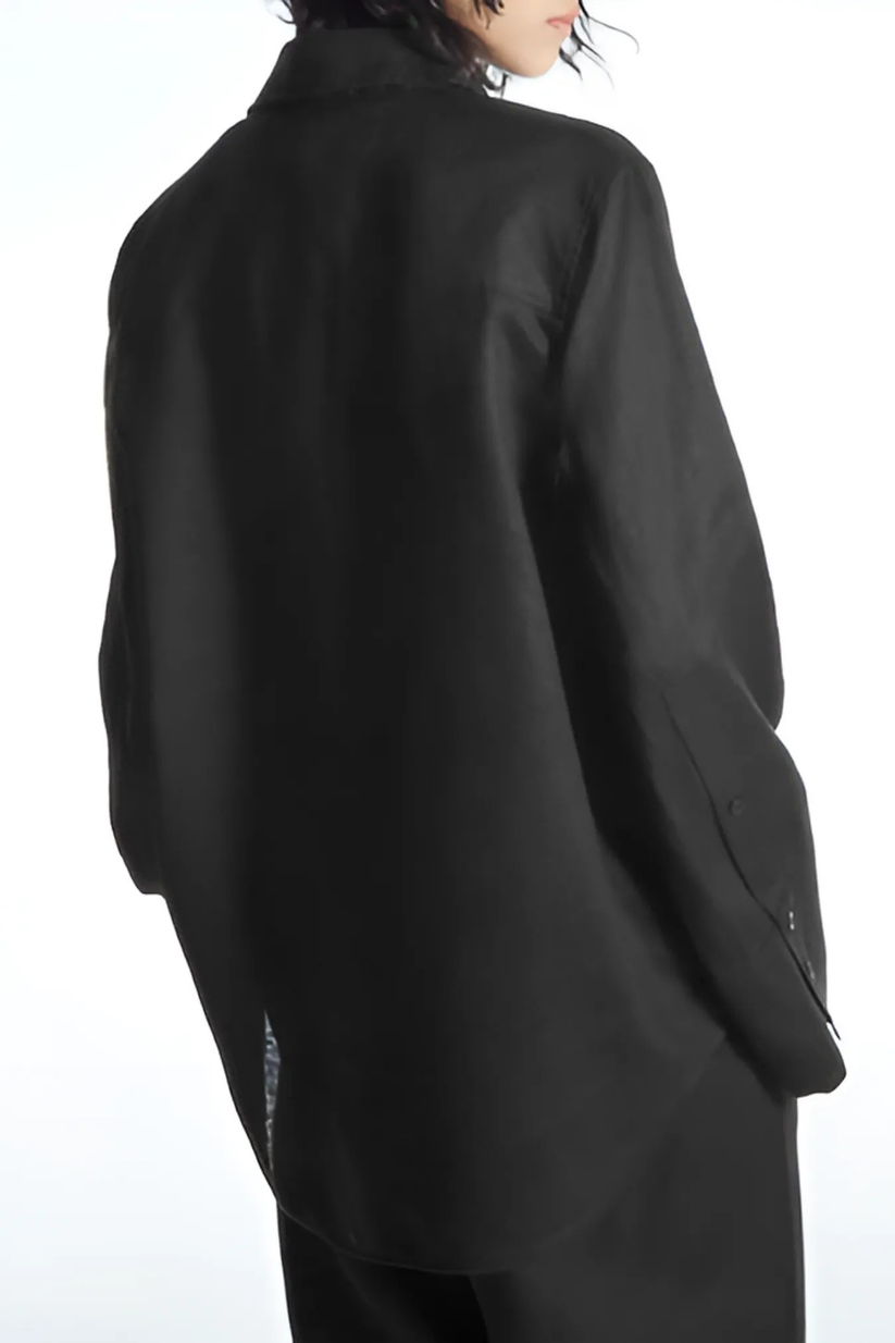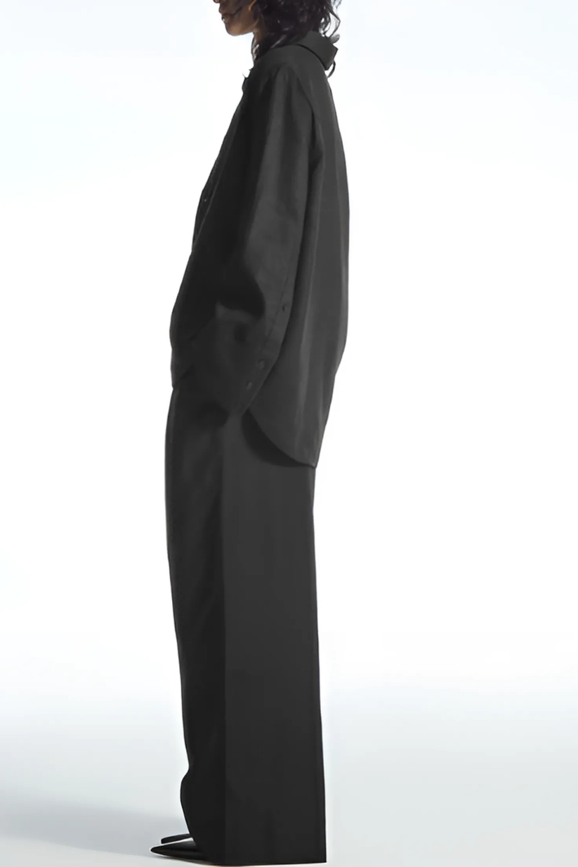 Black Linen Co-ord Set – Wide-Sleeve Shirt & Wide-Leg Pants