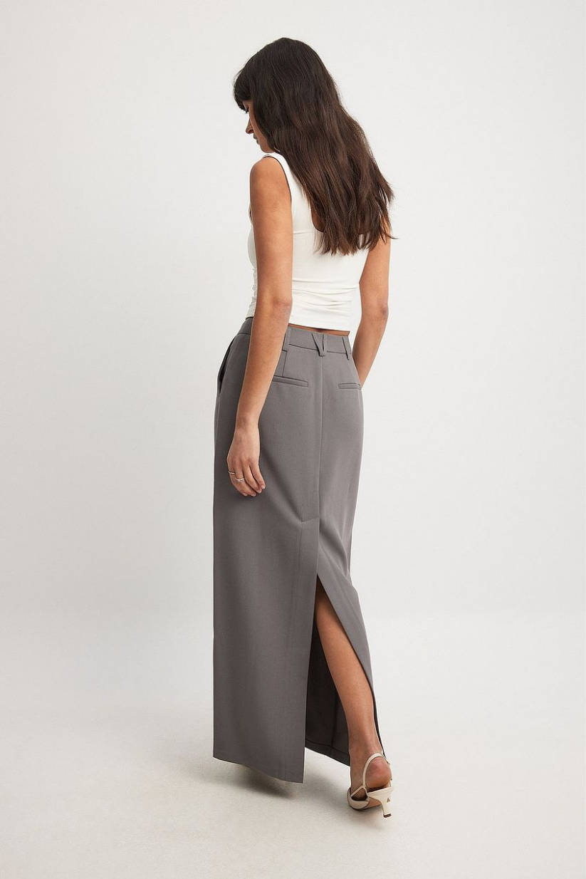 Grey Tailored Maxi Skirt – Formal Long Skirt for Women