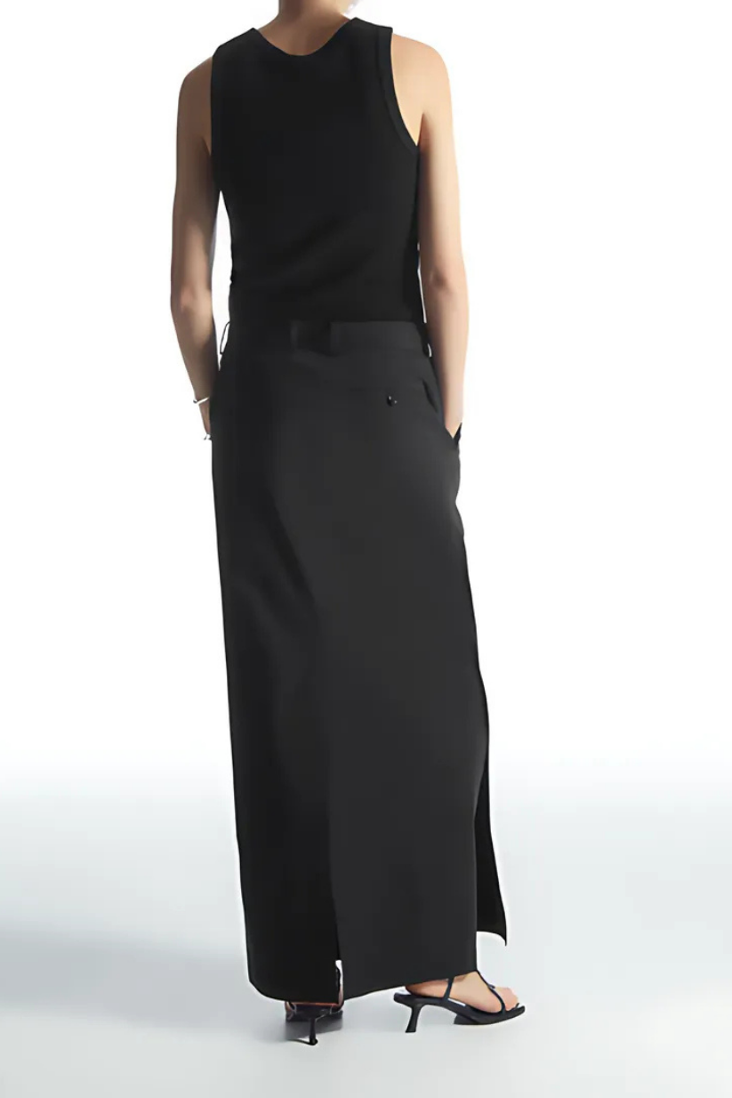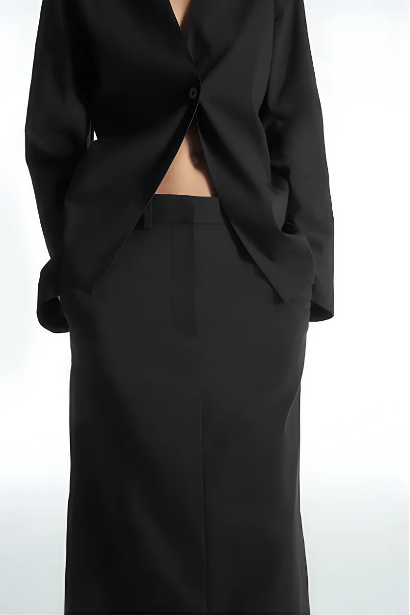 Our classic black pencil skirt for women is designed in a breathable linen-cotton blend with belt loops and a deep side vent for ease of movement. A timeless essential for your pencil skirt with top set collection.