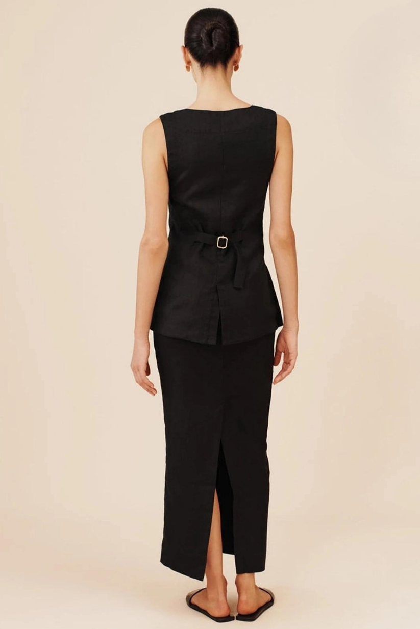 Black Linen Co-ord Set for Women – Formal Waistcoat & Skirt