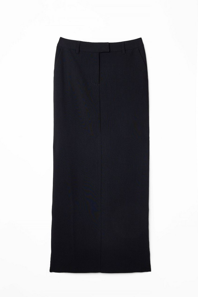 Black Tailored Maxi Skirt – Formal Long Skirt for Women