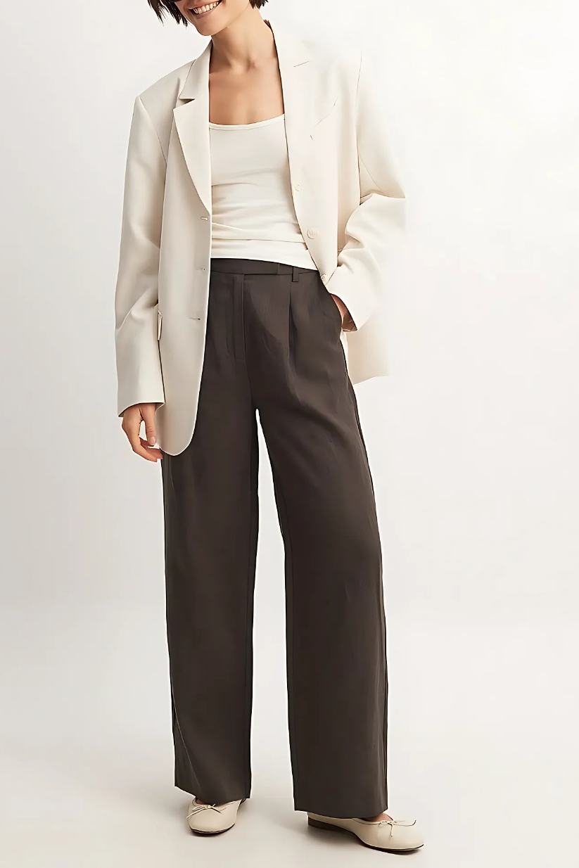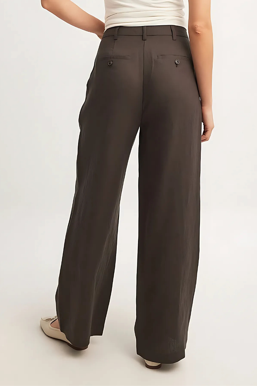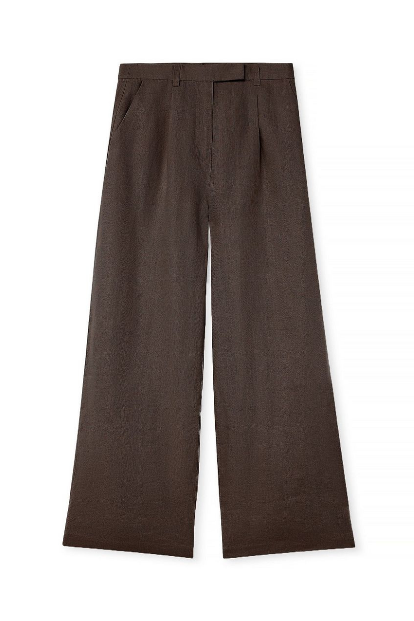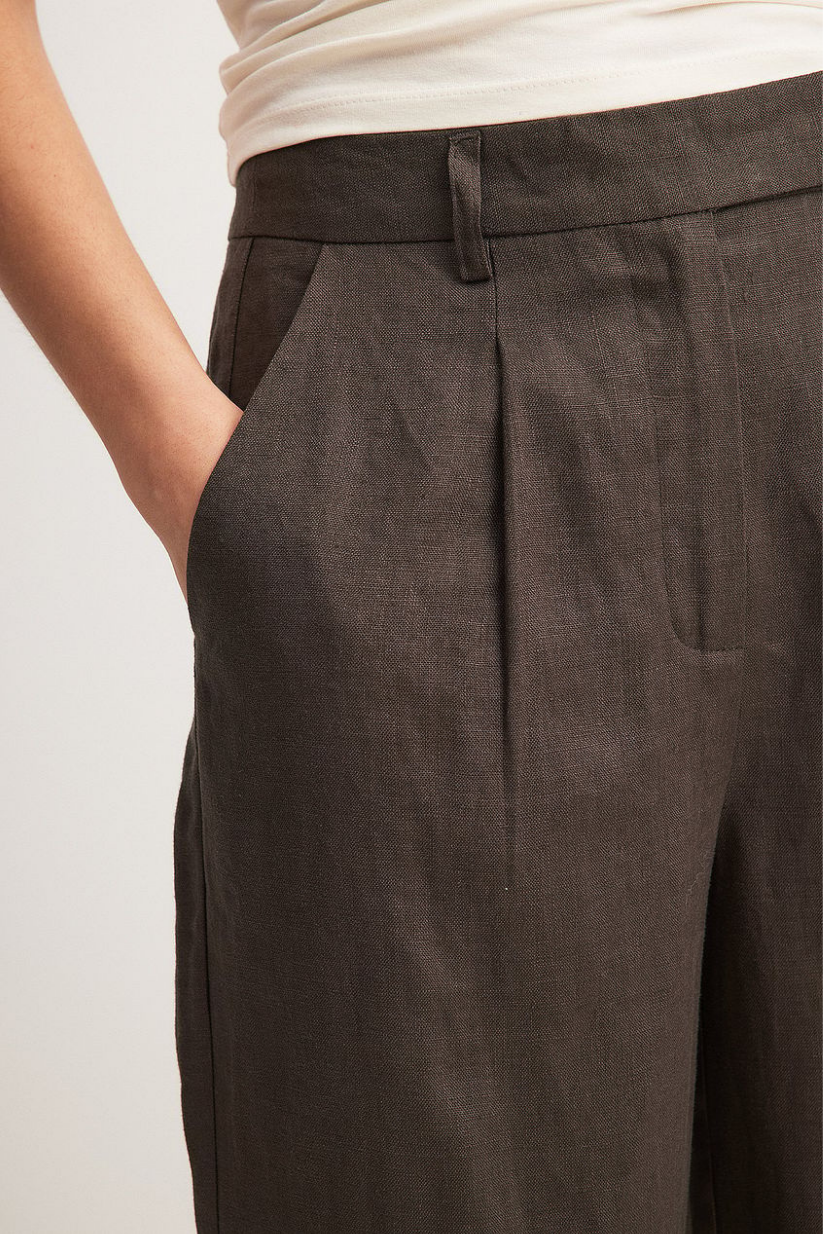 Brown Linen Wide Leg Pants