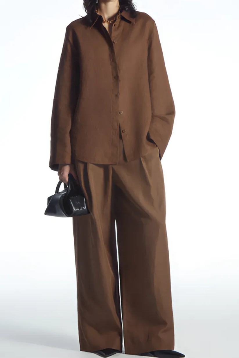 Brown Linen Shirt and Pants Set – Co-ord for Women