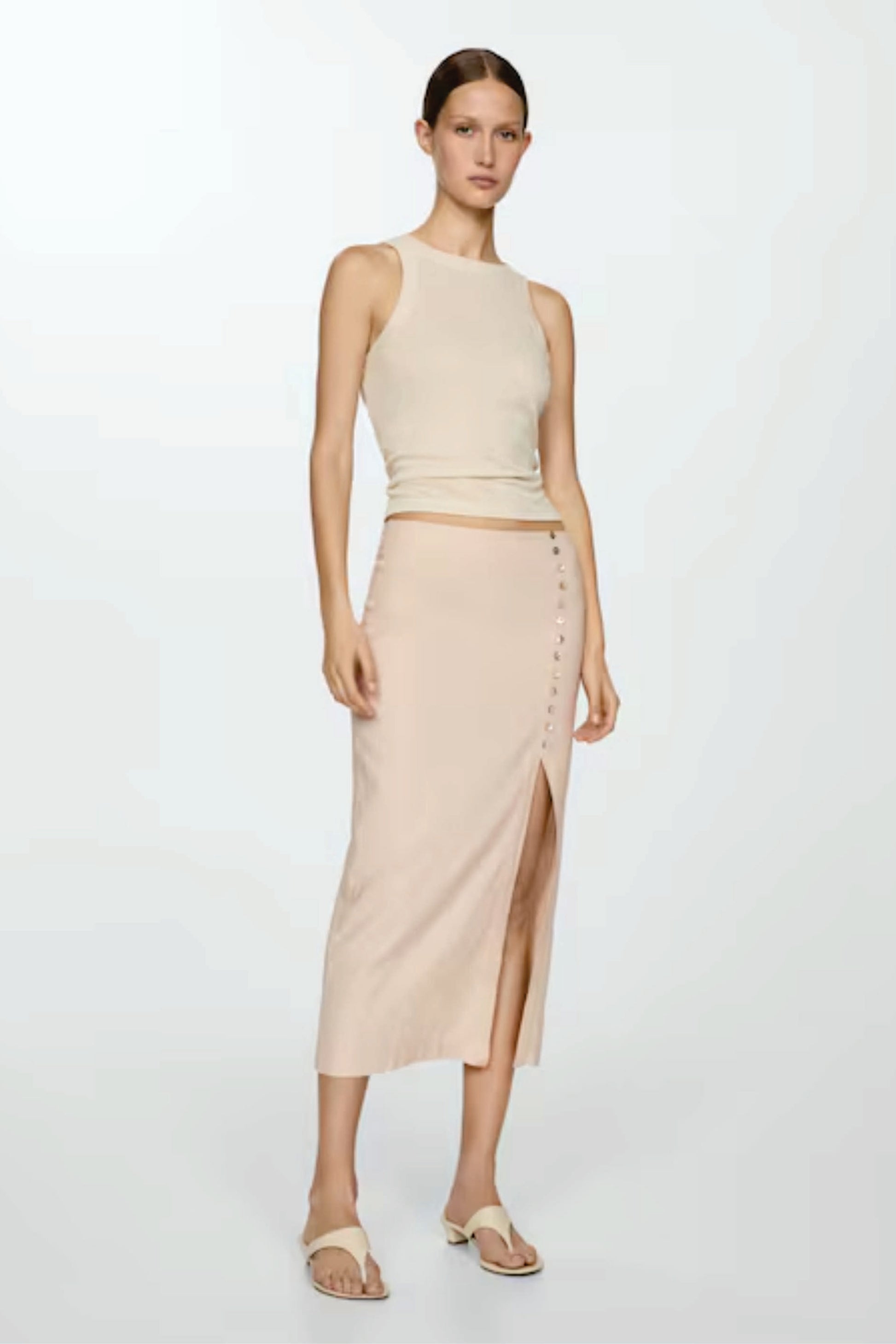 Perfect skirt for summer! The cotton-linen material is breathable and makes me feel cool.