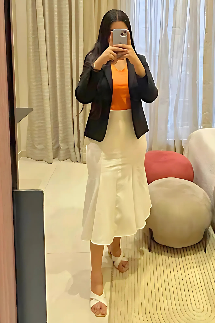 This skirt features a flared design, adding a touch of retro flair to your outfit. This skirt is designed to keep you looking polished and feeling confident throughout your workday. Crafted with a focus on fashion and ease of wear, it provides a comfortable fit.