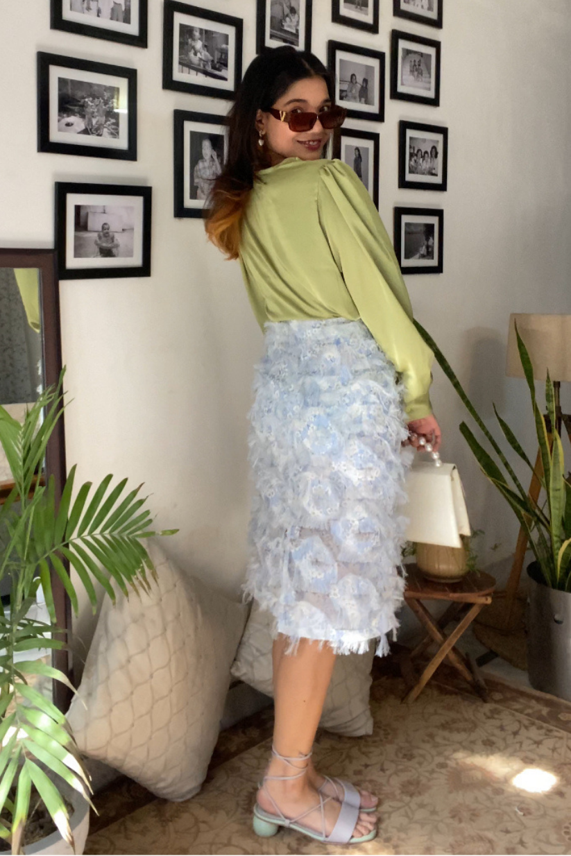 This trendy V-neck blouse design features an elegant overlap satin finish, puffed sleeves, and a stretchable bottom for a flattering fit. Perfect for the modern professional, it blends style and comfort seamlessly, making it ideal for both office meetings and after-hours events. Pair it with tailored trousers or skirts for a polished, versatile look.