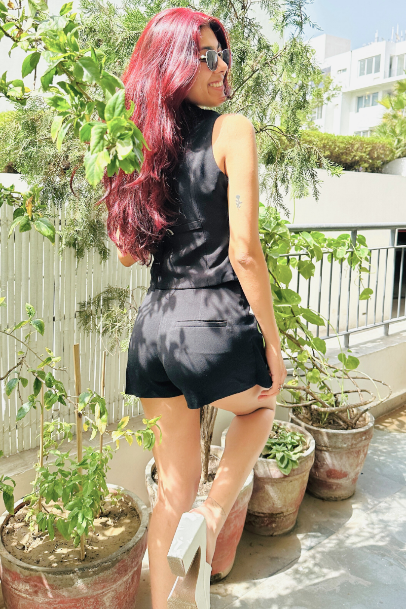 The classic black ladies short skirt, reimagined as a skort for confidence and movement. Dress it up with a blazer or keep it minimal with a crisp shirt.