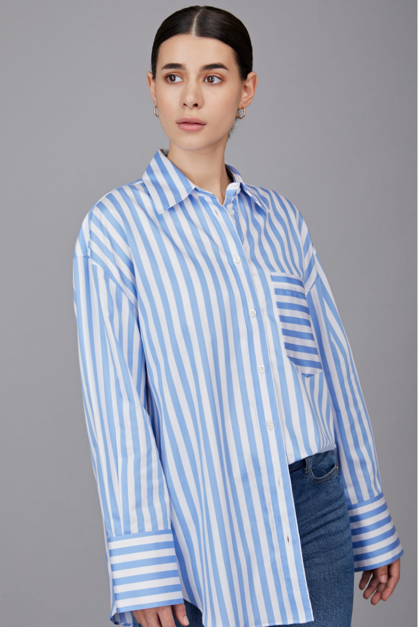 The perfect mix of style and comfort! This shirt is oversized but still looks so polished for the office. Delivered right on time too!